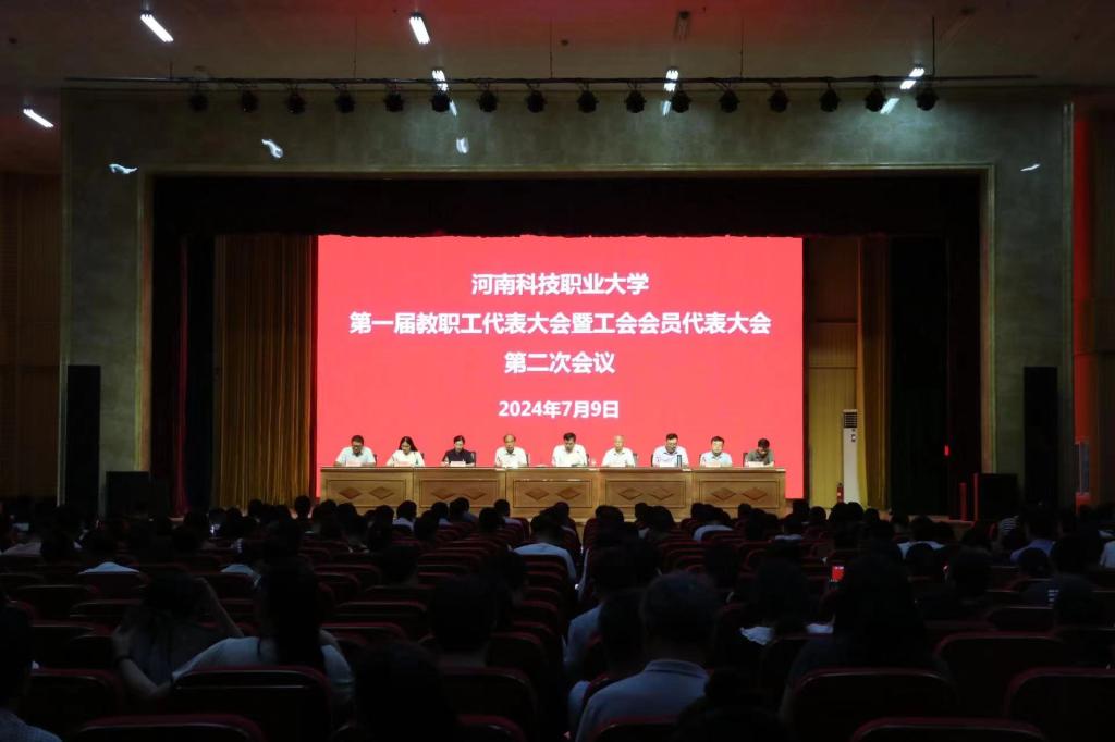 7月9日,我校在图书馆三楼报告厅召开第一届教职工代表大会暨工会会员代表大会第二次会议。执行校长陈建国,校党委副书记司元亨,副校长许德宽、师鹏,工会主席崔海花,党委委员、组织部部长门立志,工会副主席闫晓梅、赵凯,朱良勇在主席台就坐。会议由司元亨主持。